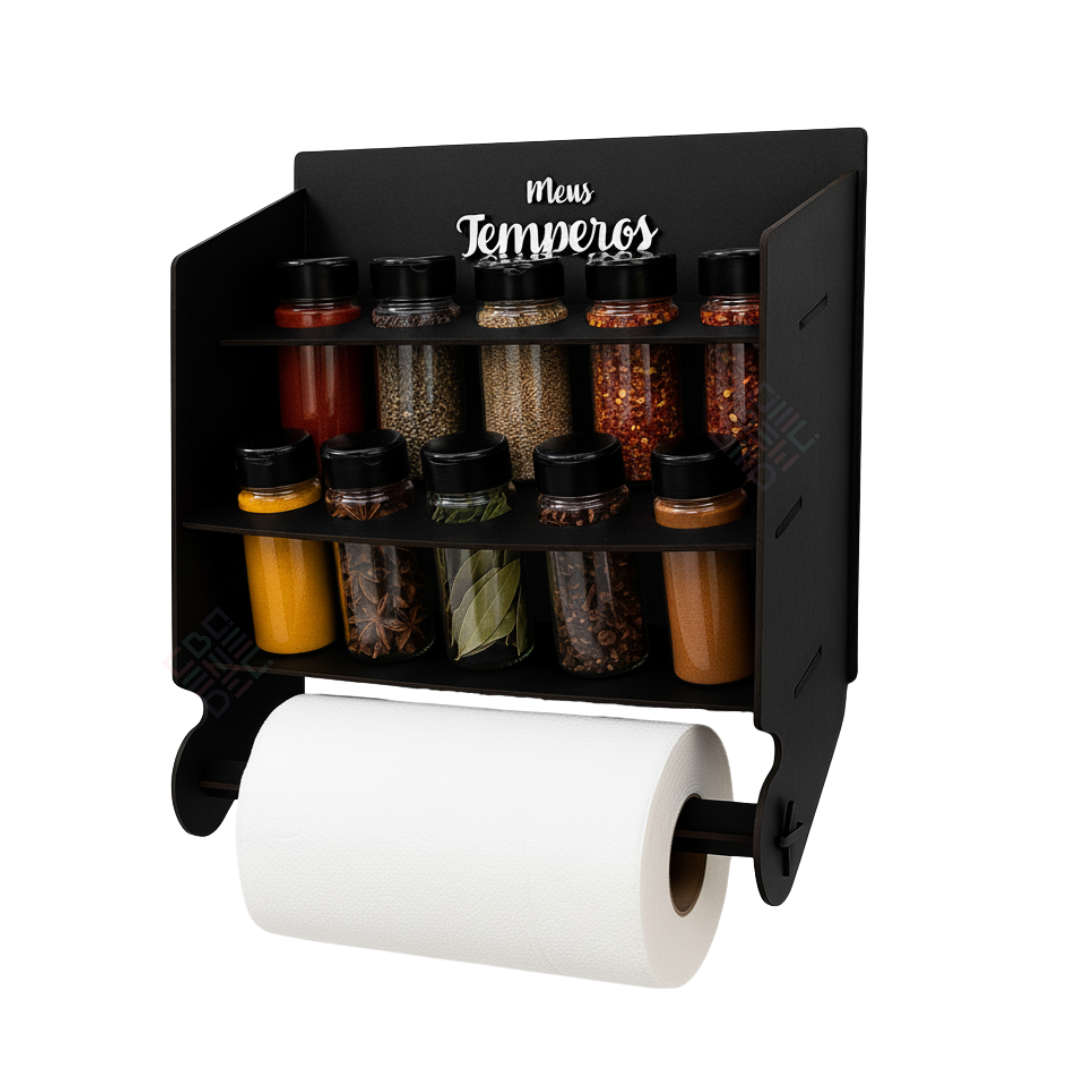 Você já pensou em transformar sua cozinha em um ambiente mais organizado e aconchegante? O nosso Suporte Porta Temperos e Porta Papel Toalha é perfeito para quem busca praticidade e eficiência na hora de cozinhar. Otimize espaço e Organize seus temperos com praticidade e estilo. Com capacidade para 10 potes de temperos, já inclusos, você terá fácil acesso aos seus condimentos favoritos.