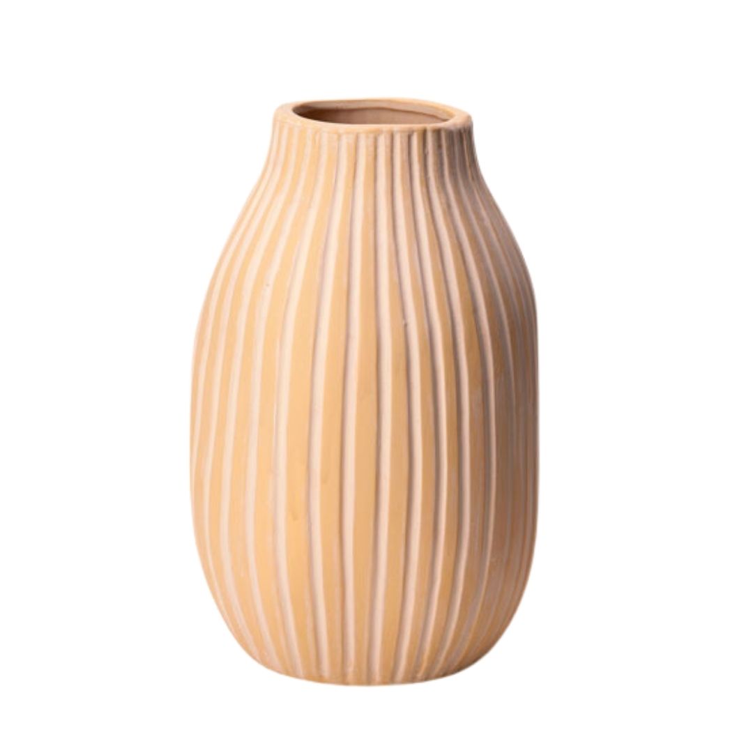 Apresentamos o nosso incrível Vaso em cerâmica Listras Coral Mart. Combina perfeitamente em qualquer ambiente e possui cor neutra e atemporal, encaixando-se em qualquer decoração.